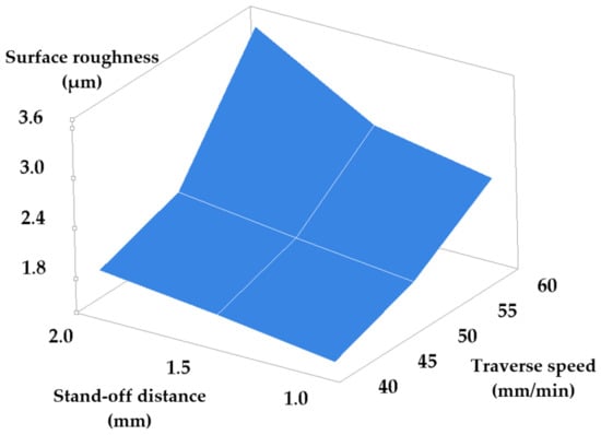 Roughness values obtained upon adjusting traverse speed and stand-off distance.