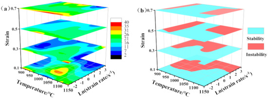 3D power dissipation maps (a) and instability map (b) of the newly designed Fe–5Mn–3Al–0.1C.