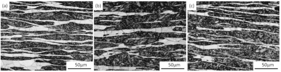 - Grajcar, A.; Skrzypczyk, P.; Kuziak, R.; Gołombek, K. Effect of Finishing Hot-Working Temperature on Microstructure of Thermomechanically Processed Mn–Al Multiphase Steels. Steel Res. Int. 2014, 85, 1058–1069. [Google Scholar] [CrossRef]