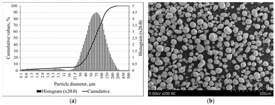 The particle size distribution of zeolitic by-product is shown in Figure 2a, and these particles had a mean particle diameter of 78.39 µm. According to SEM, the crystals had a round, spherical shape (Figure 2b).