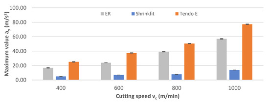 - the maximum values of vibration accelerations were the lowest at 400 m/min and were, respectively, for ER—16.9 m/s2, heat shrink chuck—4.9 m/s2, Tendo E—25.2 m/s2;