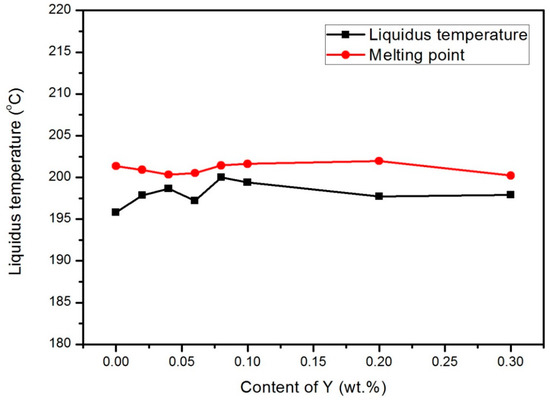 - The amount of Y added had no significant influence on the melting point and melting range of the alloy.