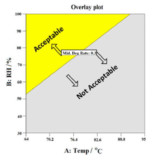 In order to further improve the durability of the membrane to achieve the life goal of automotive applications, another solution is to optimize the operating conditions of the fuel cell without upgrading the membrane materials. Under typical automotive operating conditions, dynamic load creates dynamic thermal/humidity state, changes reactant demand and induces potential cycling [2]. These factors lead to mechanical degradation of components and gas starvation. Mechanical degradation is non-uniform due to differences in the local current density and water content. Air starvation induces hydrogen pumping, thereby causing hot spots in the cathode. Lai et al. [77] found that high humidity fluctuation and/or frequent water absorption/dehydration rate could lead to high residual tensile stress in the experiment of relative humidity cycle. Reducing the intensity of relative humidity cycle could significantly delay the mechanical failure of membranes. Liu et al. [78] analysed impact of reactant gas partial pressure on membrane chemical degradation by using fluoride release rate as the assessment criterion. A strong dependency of fluoride release rate on H2 partial pressure was observed in the range of 20–200 kPa, and fluoride release rate increased more than 10 times when H2 partial pressure rised 10 times. On the contrary, there was no significant difference in fluoride release rate when O2 partial pressure increased from 40 to 200 kPa. Zhao et al. [78] investigated the effects of operating temperature and relative humidity on membrane durability using the OCV accelerated stress test. The results showed that the membrane degradation rate was directly proportional to the temperature and inversely proportional to the humidity. In addition, the optimum operational region was mapped without modifying membrane materials, as shown in Figure 8. The optimal region of the fuel cell could be determined by the pre-set boundary conditions. The acceptable conditions found were a temperature between 60 °C to 90 °C with 53% to 100% RH [78]. The above conclusions could provide valuable guidance for PEMFC designers and system engineers to achieve the expected service life of membrane by optimizing the operating conditions.