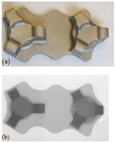 Cast preforms: (a) lower degree of forging, (b) X-ray of a preform.