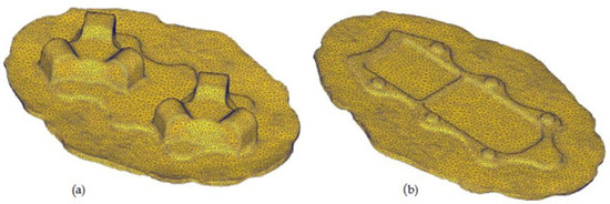 FEM-simulated shape of aircraft bracket forging: (a) top, (b) bottom.