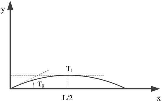 where is the angle between the fiber curve and the axis X at the origin of the coordinate, and is the angle between the fiber curve and the axis X at the origin of the distance L/2 coordinate, here .
