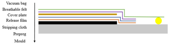 After the composite laminate was placed, a vacuum bag was placed on the periphery of it. Additionally, the vacuum was precompacted. The principle is shown in Figure 8. Then, the composite laminates were solidified in a hot-pressing tank. The solidification process is shown in Figure 9.