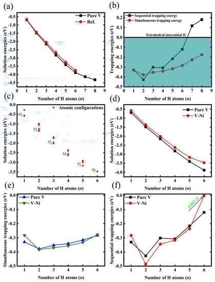 - Zhang, P.B.; Zou, T.T.; Feng, S.B.; Zhao, J.J. First principles investigations of hydrogen interaction with vacancy-oxygen complexes in vanadium alloys. Int. J. Hydrog. Energy 2019, 44, 26637–26645. [Google Scholar] [CrossRef]