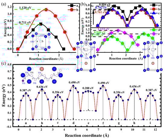 - Henkelman, G.; Uberuaga, B.P.; Jonsson, H. A climbing image nudged elastic band method for finding saddle points and minimum energy paths. J. Chem. Phys. 2000, 113, 9901–9904. [Google Scholar] [CrossRef]
