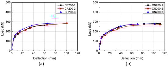 Load-deflection relationships of H200 series: (a) CF200; (b) CN200.