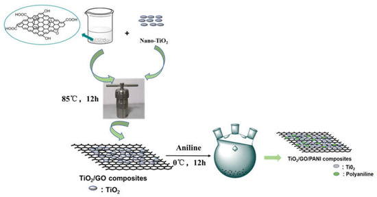 2.4. Preparation of Ternary TiO2/GO/PANI Composite Material