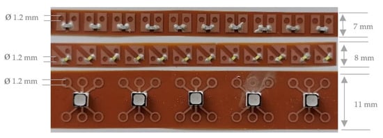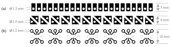 All these publications [21,22,23,24,25,26] mainly present flexible solutions for the production of printed circuit boards using an inkjet printer. The conventional approach of, e.g., masking and etching surface-coated printed circuit boards using subtractive technology [15] continues to offer an innovative and untapped research need for the development of new, flexible and functional boards and sequins. For example, subtractive technology with mask printing [23] and etching technology offers a conceivable approach for realizing printed flexible printed circuit boards.