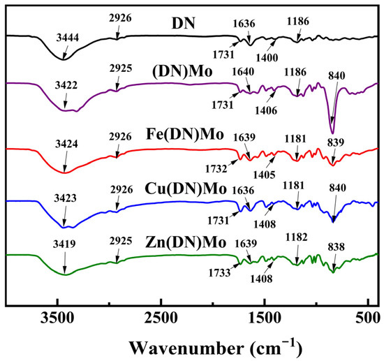 2.2.2. Synthesis of Molybdate Ion Complex ((DN)Mo)