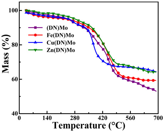 | PVC/Zn(DN)Mo | 70.93 | 242.5 | 100.05 | 409.5 | 13.57 | 38.9 |