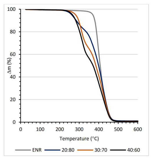 TGA curves of ENR and PLA/ENR blends.