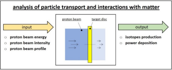 (Step a) is schematically represented in Figure 2. In order to have an accurate estimation of the radioactive isotopes produced by protons’ interaction with the target material, dedicated Monte Carlo codes such as FLUKA and MCNP are adopted [6]. The same codes also provide detailed power deposition maps for the target components directly impinged by the beam (discs, windows, dumpers, box). Of course, the quality and reliability of results are deeply affected by input parameters, in particular by the proton beam energy, intensity and profile.