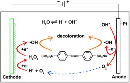 - Zhou, L.; Zhou, M.; Zhang, C.; Jiang, Y.; Bi, Z.; Yang, J. Electro-Fenton degradation of p-nitrophenol using the anodized graphite felts. Chem. Eng. J. 2013, 233, 185–192. [Google Scholar] [CrossRef]