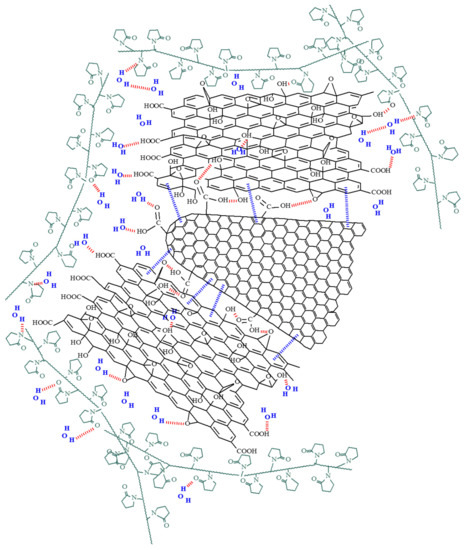 Polyvinylpyrrolidone (abbreviated as PVP, depicted in Figure 2, with an average mol wt 40,000), isopropanol (70% w/w in water), and graphene oxide (abbreviated as GO, depicted in Figure 3, 15–20 sheets, 4–10% edge-oxidized, 1 mg/mL dispersion in water) were also purchased from Sigma-Aldrich. No further purification of the agents was conducted before the experiments.