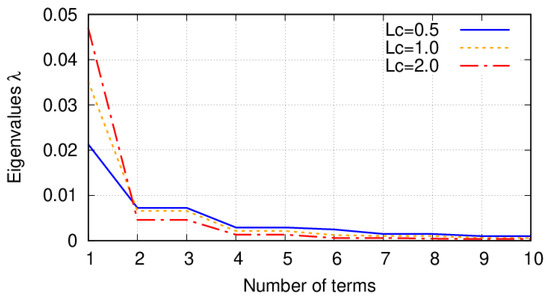 Eigenvalues of the Fredholm integral for different correlation lengths.