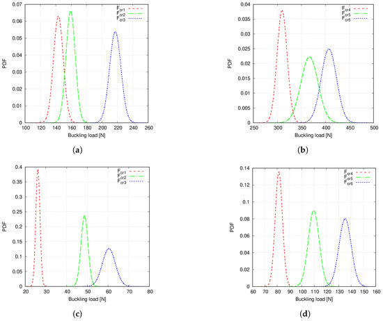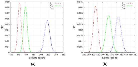 Case 1 and 2 buckling load PDFs, considering the two defects, are represented in Figure 17. These PDFs were obtained using the second-order PCE surrogate and computing a total of emulations.