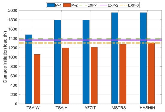 Figure 8. The damage initiation load from numerical and experimental cases.