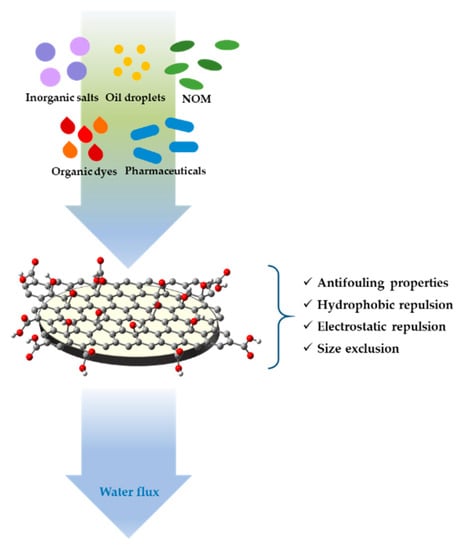 - Hu, M.; Mi, B. Enabling Graphene Oxide Nanosheets as Water Separation Membranes. Environ. Sci. Technol. 2013, 47, 3715–3723. [Google Scholar] [CrossRef]