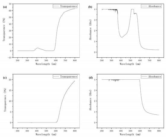The absorbance and transmittance of ultraviolet and visible light were measured by UV–Vis spectrophotometer (UV1800, Shimadzu Corporation, Kyoto, Japan).