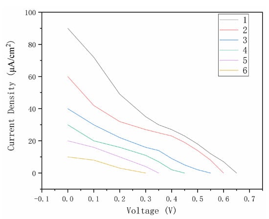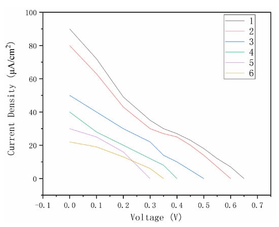 As is commonly known, the platinum-plated electrode has the best performance, good stability, and a certain catalytic effect []. However, the disadvantage is the high cost. As the metal with the best electrical conductivity, the price of silver is only 3% of that of platinum. Therefore, a carbon black–silver counter electrode was used, consisting of a layer of silver oriented on the bottom and then a layer of carbon black printed on the surface, which helps to protect the silver electrode from being corroded by the electrolyte and increases the durability and stability of the counter electrode [].