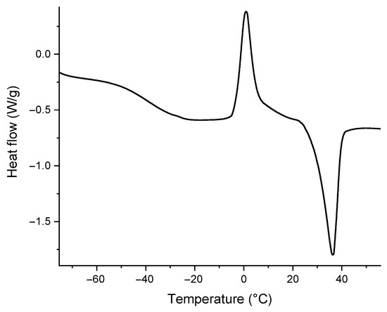 Differential scanning calorimetry (DSC) measurements were conducted with a TA Q20 instrument (TA instruments, New Castle, DE, USA), equipped with a Refrigerant Cooling System (RCS90, TA instruments, New Castle, DE, USA) (heating rate of 10 °C min−1, temperature range from −80 to 55 °C) and under an anhydrous nitrogen atmosphere (60 mL min−1).