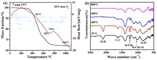 - Ly, H.; Taylor, R.; Day, R. Conversion of polycarbosilane (PCS) to SiC-based ceramic Part Ⅱ: Pyrolysis and characterisation. J. Mater. Sci. 2001, 36, 4045–4057. [Google Scholar] [CrossRef]
