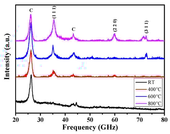 - Ding, D.-H.; Zhou, W.-C.; Zhou, X.; Luo, F.; Zhu, D.-M. Influence of pyrolysis temperature on structure and dielectric properties of polycarbosilane derived silicon carbide ceramic. Trans. Nonferrous Met. Soc. China 2012, 22, 2726–2729. [Google Scholar] [CrossRef]
