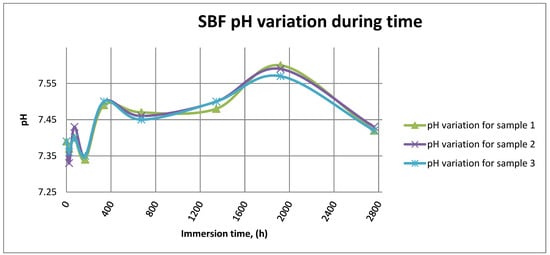 Figure 14 shows the variation in pH for SBF in the case of all three samples.