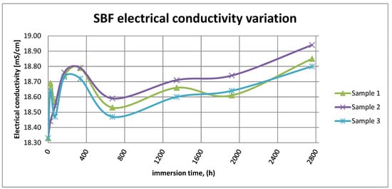 Figure 15 shows the variation in electrical conductivity of SBF in the case of all three samples.