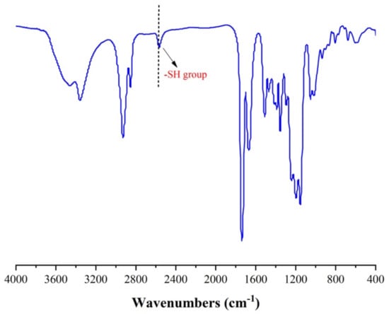 FT-IR spectrum of hyperbranched thiol oligomer HMDI-6SH.
