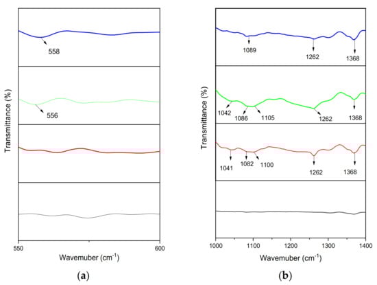 FTIR spectra (a) 550–600, (b) 1000–1400.