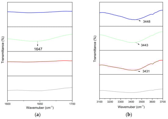 FTIR spectra (a) 1600–1700, (b) 3100–3700.