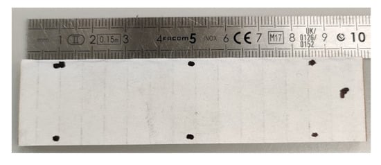 A typical test to determine the compressive strength of corrugated board is the ECT (according to the FEFCO standard DIN EN ISO 3037 [,]), in which a specimen that is 100 mm long and 25 mm high (see Figure 3) is loaded along its height between two rigid plates (see Figure 4a). The samples should be cut on a special cutter with the use of one-sided ground blades to maintain the parallelism of the cut edges. According to the standard, the air condition should be controlled, and the test should be carried out at 23 °C and 50% relative humidity. All the ECT tests were performed in a controlled environment as standard on an FEMat ECT/FCT laboratory apparatus (FEMat Sp. z o. o., Poznan, Poland) [], see Figure 4b.