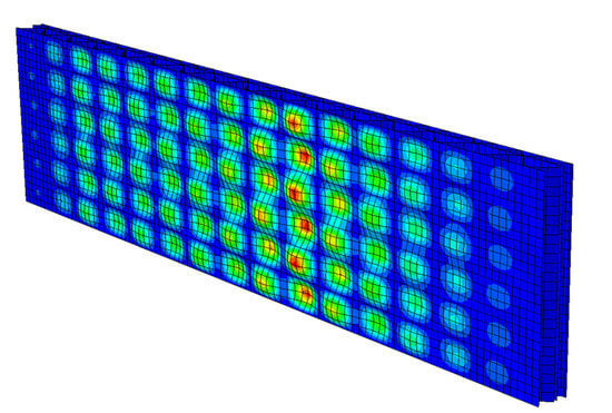 The first perturbation analysis was only to find the initial shape imperfection in the numerical model of the ECT sample, which was later entered as the first scaled eigenvector of the model (see Figure 12) in the Abaqus Unified FEA® software. This imperfect geometry was used in nonlinear analysis where the standard Newton–Raphson algorithm was used to find convergence in the subsequent iterations.
