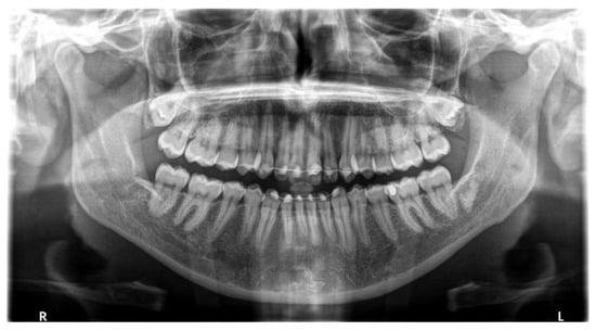 - Morris, C.R.; Jerman, A.C. Panoramic radiographic survey: A study of embedded third molars. J. Oral Surg. 1971, 29, 122–125. [Google Scholar] [PubMed]