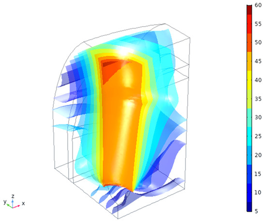 Simulation domain (the ¼ symmetry part of the full domain; left) and the mesh used (right) with COMSOL 5.4 (Comsol Inc., Burlington, MA, USA). The mesh consists of 191,615 elements with a higher density closer to implant surface and has 804,187 degrees of freedom to be solved for. The computational domain size is 5 × 6 × 10 mm3 (X × Y × Z) with boundary conditions shown above.