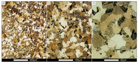 - Morris, J.W. The Influence of Grain Size on the Mechanical Properties of Steel; U.S. Department of Energy, Office of Scientific and Technical Information: Berkeley, CA, USA, 2001. [Google Scholar] [CrossRef]