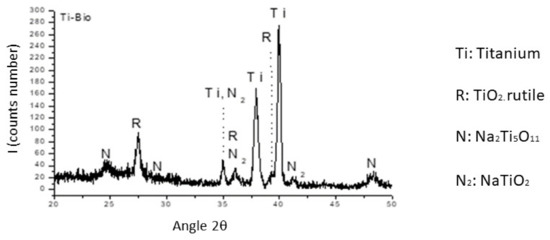 When performing long-angle X-ray diffraction, we can observe the presence of sodium titanate, and no other element than titanium and the titanium oxide of the passive layer of the dental implant (Figure 5).