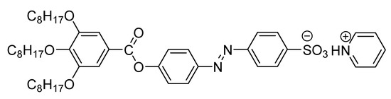 The synthesis of pyridinium salt of 4′-[3″,4″,5″-tris-(octyloxy)benzoyloxy]azobenzene-4-sulfonic acid (C8AzoPyr) was described in previous reports [31,36]. The chemical structure of C8AzoPyr is given in Scheme 1.