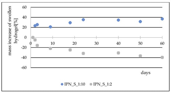 Mass changes over a two-month period for chosen IPNs.