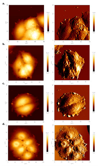 - Franz, C.M.; Puech, P.-H. Atomic Force Microscopy: A Versatile Tool for Studying Cell Morphology, Adhesion and Mechanics. Cell. Mol. Bioeng. 2008, 1, 289–300. [Google Scholar] [CrossRef]