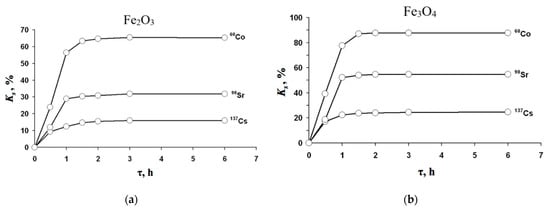 Efimova, N.V.; Krasnopyorova, A.P.; Yuhno, G.D.; Sofronov, D.S.; Rucki, M. Uptake of Radionuclides 60Co, 137Cs, and 90Sr with α-Fe2O3 and Fe3O4 Particles from Aqueous Environment. Materials 2021, 14, 2899. https://doi.org/10.3390/ma14112899