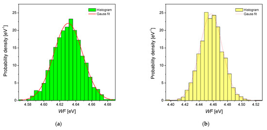 Table 4 presents the average values of the work function (WFav) and standard deviation (σ) calculated based on the histograms, the literature values of WF for pure metals and alloys, and the values of the Fermi level energies calculated based on the approach proposed by Hara et al. [42] and values of EF of pure metals taken from the work of Papaconstantopoulos [43].