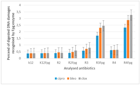 The modified DNA bacterial plasmids modified by selected antibiotic were digested by Fpg enzyme to show similar interaction as that of the analyzed diaryloalcohols. The method of cleavage of plasmid DNA by Fpg protein is described in detail in literature [6].