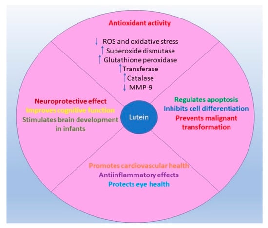 - Gong, X.; Smith, J.R.; Swanson, H.M.; Rubin, L.P. Carotenoid Lutein Selectively Inhibits Breast Cancer Cell Growth and Potentiates the Effect of Chemotherapeutic Agents through ROS-Mediated Mechanisms. Molecules 2018, 23, 905. [Google Scholar] [CrossRef] [PubMed]