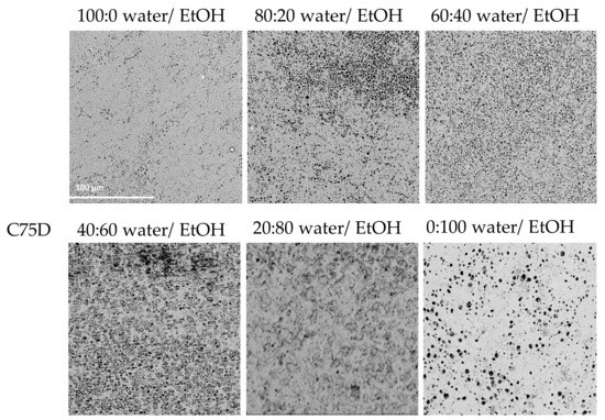 | 100:0 Water/EtOH | 80:20 Water/EtOH | 60:40 Water/EtOH | 40:60 Water/EtOH | 20:80 Water/EtOH | 0:100 Water/EtOH | ||
